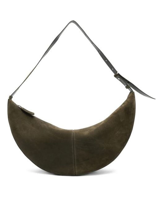 Olive green suede zip fastening adjustable shoulder strap crescent shape Size: One Size. Gender: Female. Material:CALFSKIN.