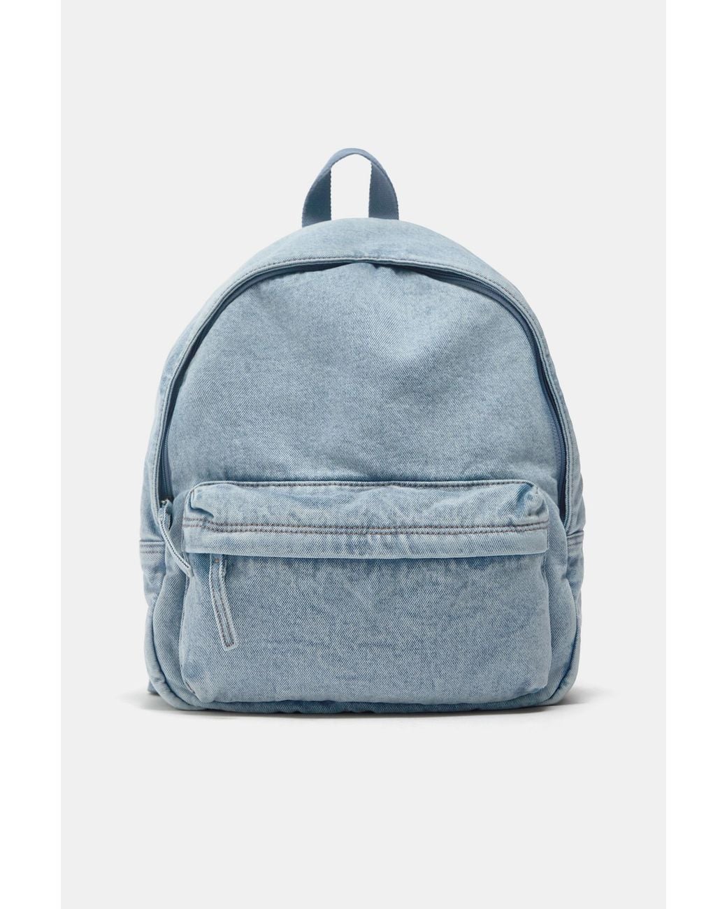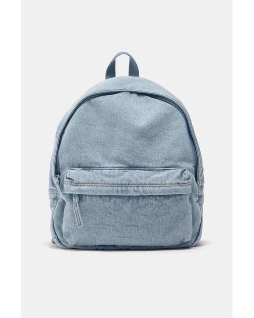 Denim backpack in blue. Front pocket. Short hand handle and adjustable shoulder straps. Zip fastening. Height x Width x Depth: 40.7 x 34.2 x 12.9 cm. Colour: blue