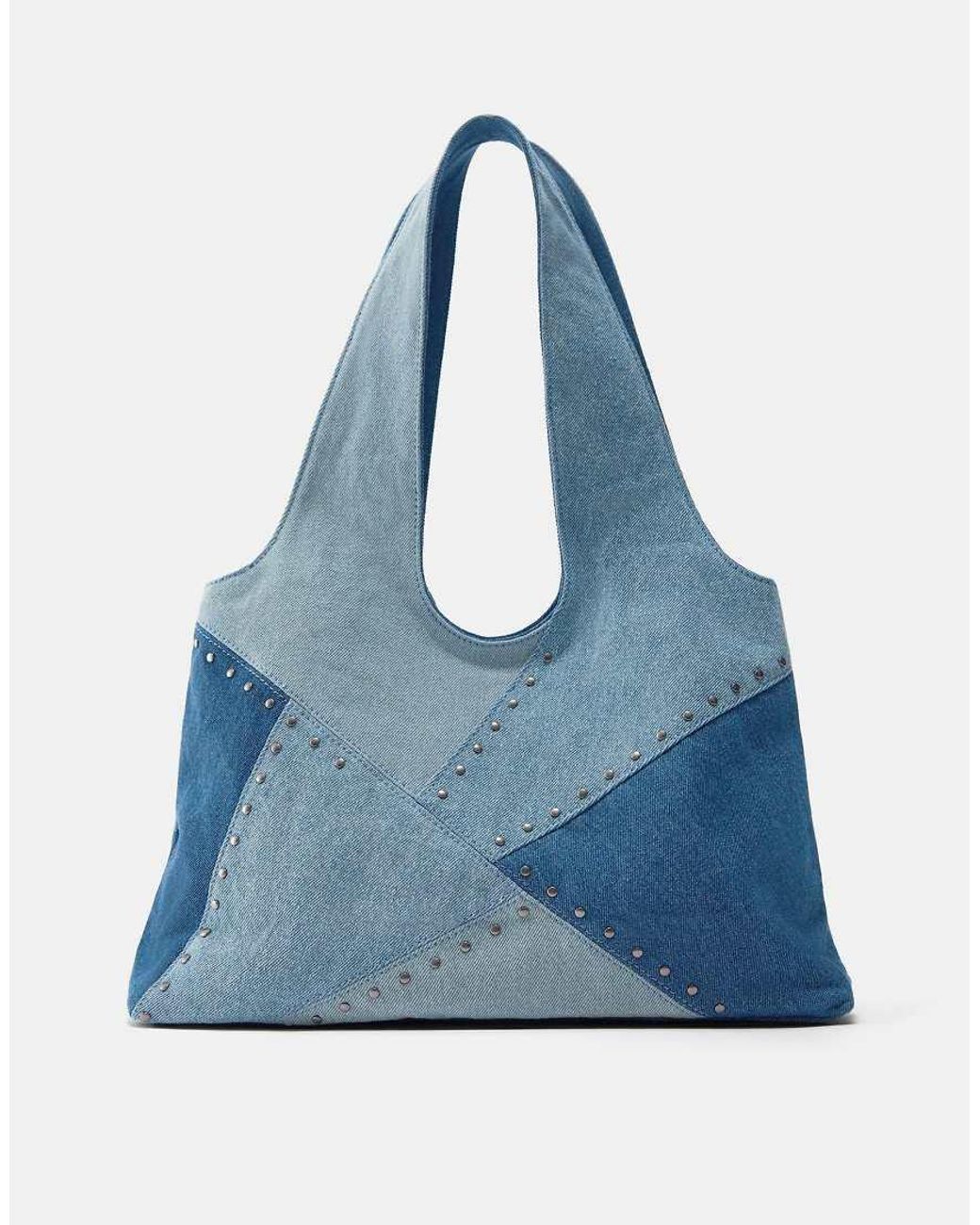Accessories by Pull&Bear Patchwork design Studded details Twin handles Press-stud fastening Internal zip pocket. Cotton/Polyester. Colour: blue