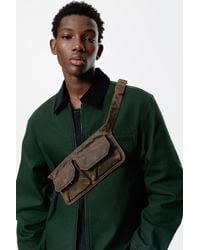 Pull&Bear Men's Green Canvas Belt Bag With Pockets