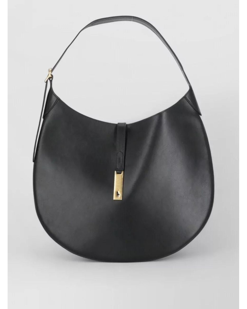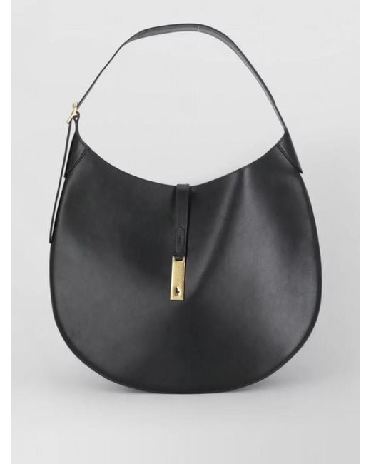 Black leather shoulder bag | Adjustable shoulder strap | Gold-tone hardware | Internal zip pocket | Metal Polo ID logo detail | One main compartment with magnetic button closure Colour: black