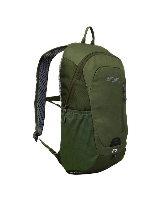 Durable 600d polyester fabrics. Durable water repellent finish. Padded air mesh back panel for comfort. Padded shoulder straps. Adjustable sternum strap. Large main compartment. Padded Internal pocket for laptop (13") or hydration. Stretch mesh side pocket. Front pocket. Reflective detail for enhanced visibility. Colour: green