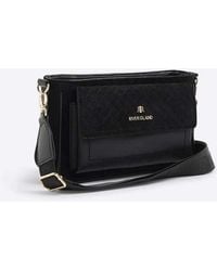 Accessories by River Island Adjustable branded strap Fold-over flap top Zip fastening Detachable pouch Colour: black