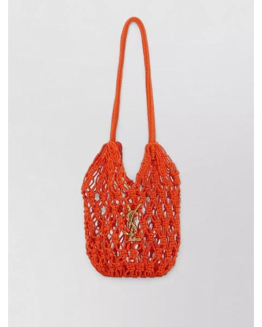 Women's Red Crochet Bucket Bag Featuring Shoulder Strap