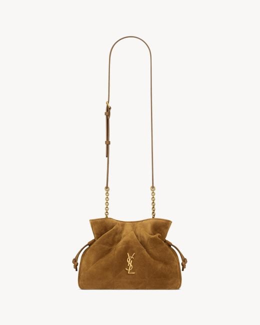 The shoulder pouch version of the jamie, decorated with the cassandre and carré rive gauche topstitching. this lightweight and compact bag features a chain strap for crossbody carry. drawstring ties allow the sides to be cinched or expanded to create different silhouettes. Colour: natural