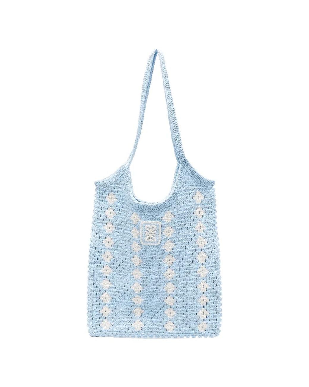 Blue crocheted polka dot top handle logo patch Size: One Size. Gender: Female. Material:Viscose/Polyamide/Cotton. Colour: blue