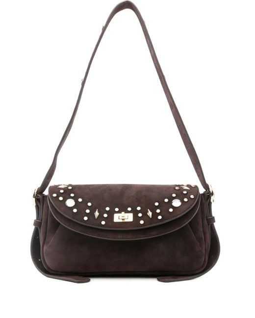 Brown grained finish embellishment top handle buckle fastening gold-tone hardware Size: One Size. Gender: Female. Material:Bovine Split Leather/Goat Skin. Colour: black