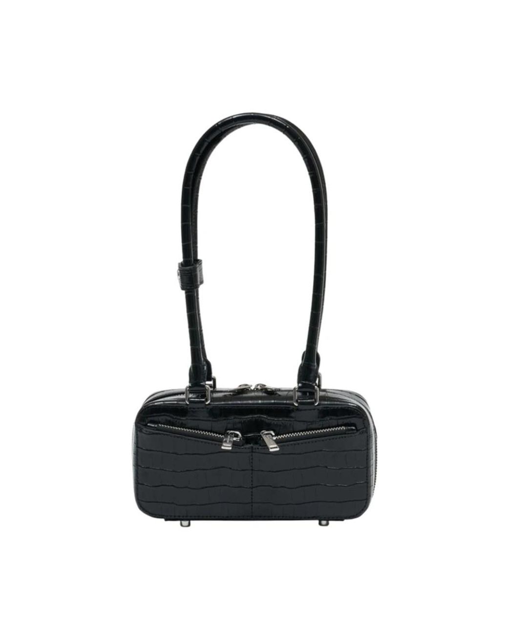 The Self Portrait Mini Shoulder Bag pairs an embossed calfskin finish with a compact silhouette, offering a refined option for everyday city carry. Its zipped compartments and single shoulder handle keep essentials organised and accessible. Key attributes: Black | Embossed calfskin | Zipper closure | Multiple zipped interior pockets | Single shoulder handle | Embossed texture | Mini silhouette | Compact profile | Composition & care: Embossed calfskin Colour: black