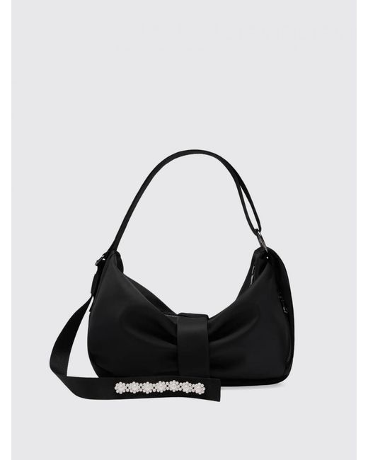Sling Bow Mini Faux Pearl-Embellished Shell Shoulder Bag - Black