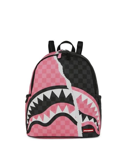 Men's Pink Check-Pattern Shark Backpack