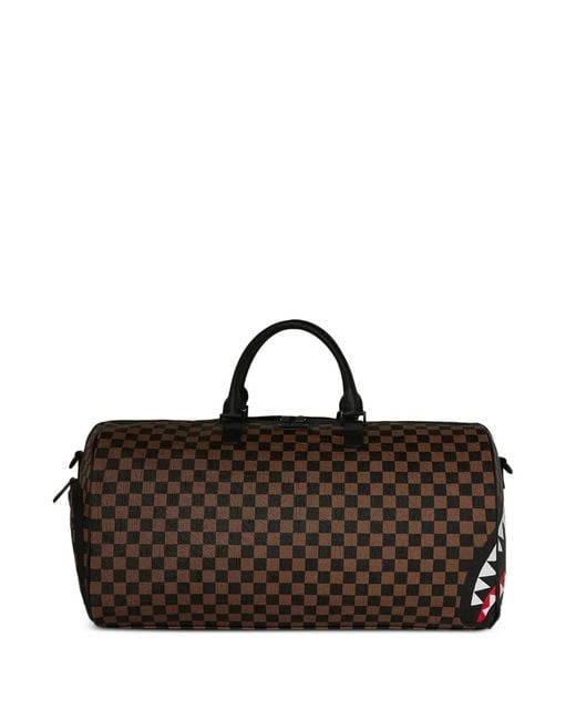 Men's Brown Check-Pattern Top-Handle Duffle Bag