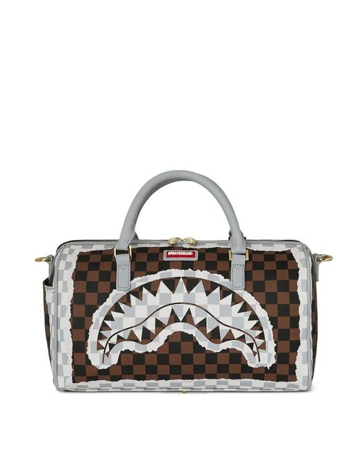 Men's Brown Checkerboard-Pattern Duffle Bag