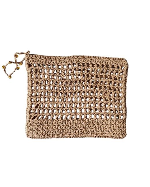 - Neutrals Cream Raffia Mesh Clutch With Beaded Handle