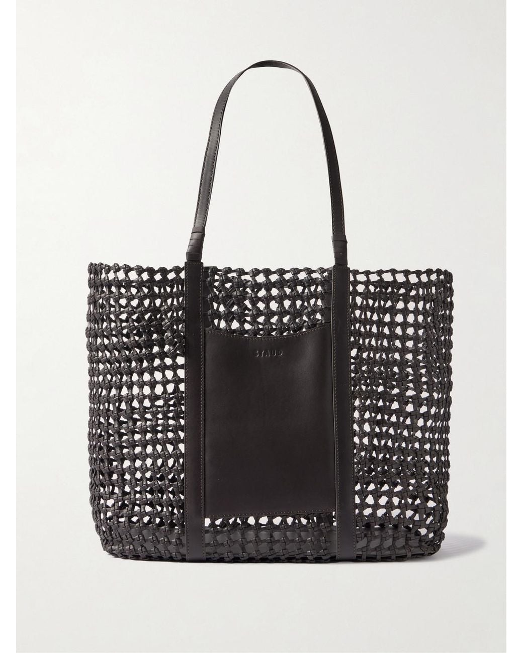 STAUD's 'Getaway' tote captures the brand's laid-back yet polished approach to everyday accessories. Hand-knotted from supple leather, this spacious design features an open weave construction and comes with a removable pouch to keep smaller essentials neatly contained. There is space inside for a water bottle, small towel and sandals. Colour: black