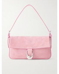 Go to Base BluThe Harlow Shoulder Bag by Staud stands out for its refined suede design and central moon-shaped buckle, an iconic and feminine detail. Featuring a practical snap closure and interior pocket, it combines elegance