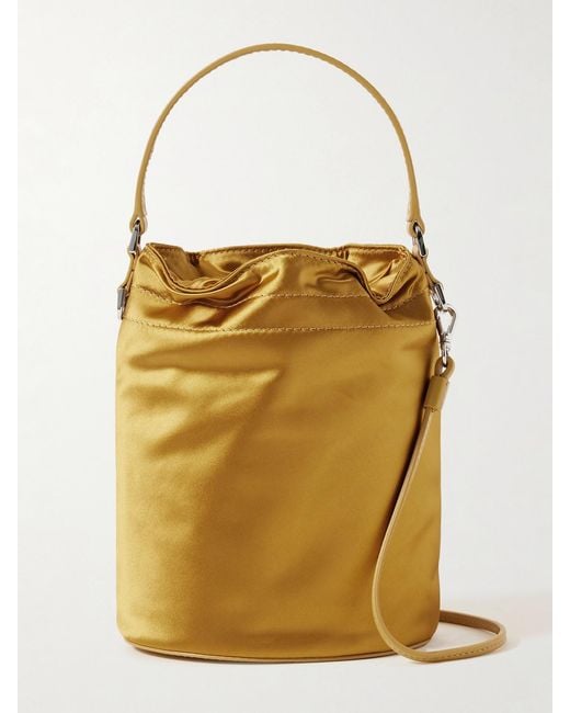 - Lila Mini Leather-Trimmed Metallic Satin Bucket Bag
