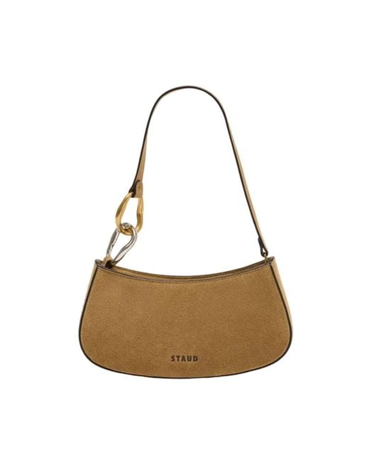 Staud Ollie Shoulder Bag is a compact mini shoulder bag designed for everyday essentials. It features a hardware-detailed strap and a secure zip closure for practical, stylish carry. Key attributes: Brown | Hazel | Cow leather | Zip closure | One shoulder strap | Interior zipped pocket | Mini shoulder bag | Hardware detail on strap | Dimensions & fit: Width: 24 cm | Height: 11 cm | Depth: 5 cm | Composition & care: 100% cow leather | Spot clean. Colour: brown