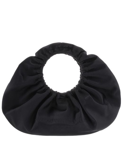 T by Alexander Wang Ladies Top Handle Bag. SKU: 20124R30T-BLACK. Color: Black. Size: 25 x 34 x 13 cm. T by Alexander Wang Small Crescent Bag. The Crescent Small bag in satin features an embossed Alexander Wang logo on the front, ruching details, and a top handle. It includes a magnetic closure, one main interior compartment, and an interior zip pocket. 100% Polyester. Colour: black