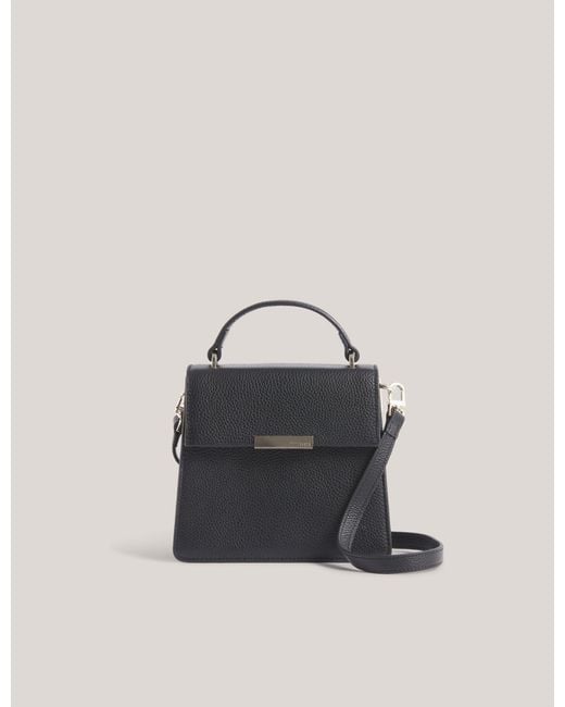 Small fold over bag Grained leather upper Slim top handle Engraved hardware bar detail Magnetic snap closure Removable crossbody strap Dual main compartments Dimensions: 17.5cm x 18.5cm x 9cm Colour: black