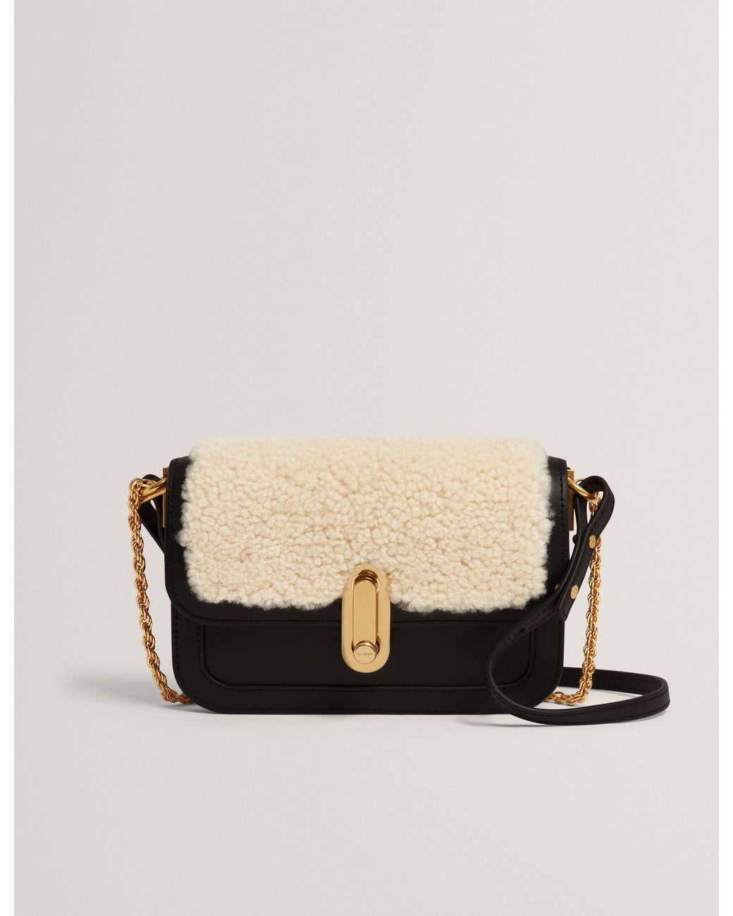- Sherlin Shearling Leather Twist Lock Crossbody Bag