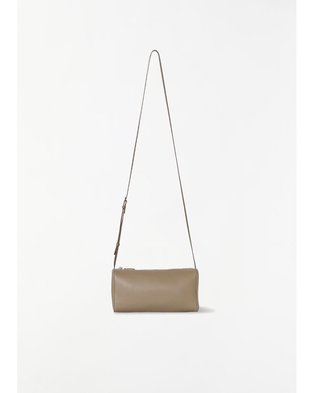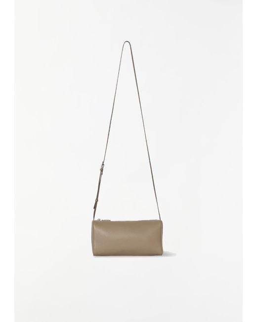 The Row stone beige crossbody bag with softly rounded edges and leather piping in supple and soft nappa leather. Features an adjustable slim shoulder strap and silver-hued metal hardware. Measures approximately: 7.7 W x 4.5 H x 3 D in. 100% Calfskin Leather. Made in Italy. Colour: white