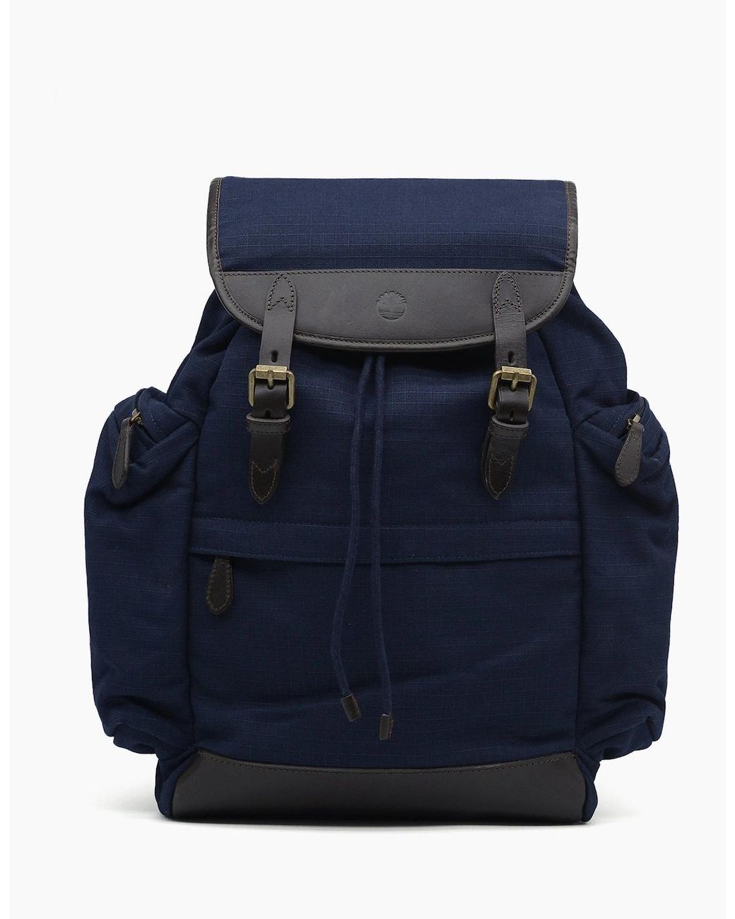 Brought to you by Timberland, a backpack made for everyday use. This bag has multiple compartments, two large exterior zip compartments at either side as well as one across the bottom. Detailed by leather buckles and accents the bag features a drawstring and magnetic fastening to open and closeColour: NavyComposition: 85% Cotton, 15% Cow leatherCare: Hand washFeatures:NavyAdjustable padded strapsCushioned back panelLeather accentsInterior compartmentsSecure exterior compartments Draw string