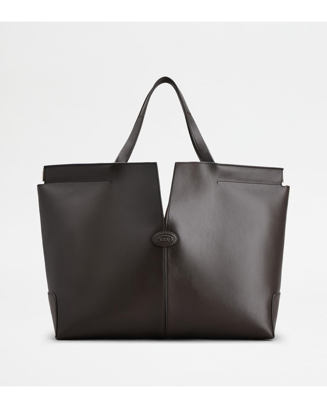 Tod's Di Bag Folio shopping draws inspiration from the most sought-after items in the brand's clothing collection. The iconic central stitching with the oval logo opens into an elegant slit. The flat handles are pulled into the top edge like a belt. The calfskin leather, light as a fabric, enhances the softness of this spacious deconstructed model, complemented by an internal pouch. Colour: black