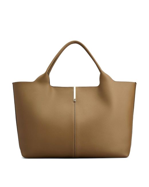 Leather Medium 'T Timeless' Shopping Bag - Natural