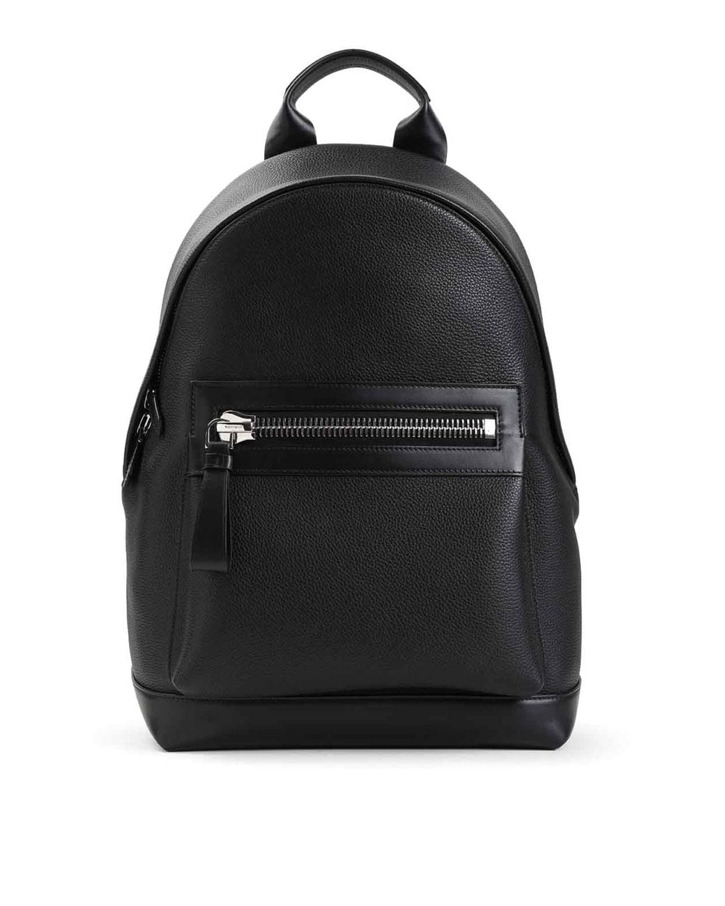 Tom ford black calf leather backpack. pure black calf leather backpack, top handle, top zipped fastening, front zipped pocket, back padded adjustable shoulder strap, one main compartment. Colour: black