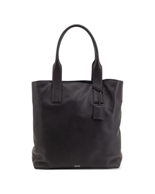 Leather Tote Bag Top Handles Detachable Tag - Black