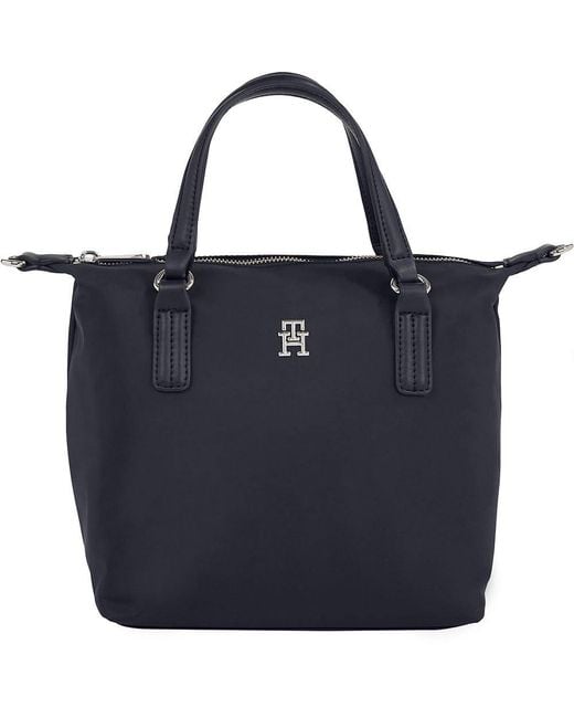 ICONIC & TIMELESS: This original Tommy Hilfiger tote bag impresses with its timeless look and classic design. The TH monogram emblem is a real highlight of this elegant bag. PRACTICAL & STYLISH: Its handy size makes this bag particularly popular. It also features a man compartment with zip fastening, where your must-haves can be stowed away safely. FOR ANY OCCASION: The functional, minimalist bag goes perfectly with any outfit. Thanks to its simple yet elegant look, the tote bag is perfect for leisure, university, or even the office. MATERIAL & DIMENSIONS: The tote bag is made from 90% Nylon, 5% polyester and 5% polyurethane. The bag's dimensions are 29 x 15 x 22 cm. PROVEN QUALITY: The designer brand has been captivating the global fashion industry with its high-quality and lightweight designs in a wide range of styles in its famous dark blue, white and red colours since 1985.