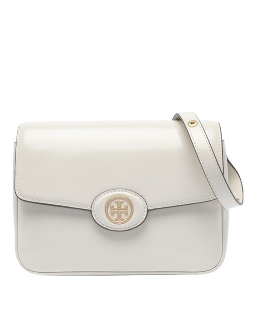 Tory Burch White Robinson Shoulder Bag, Magnetic Button Closure, Leather Model, Adaptable Strap, Frontal Golden Logo, 16x21x6 cmGender: WomenMaterial: 100% CALF LEATHERColor: WHITEMade in: ImportedProduct ID: 143122704*Import tax/duty will be calculated at checkout (If applicable)