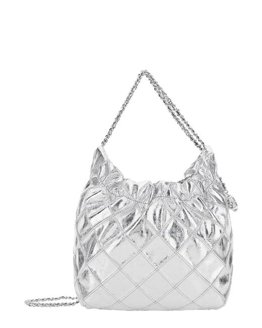 Women's White 'Fleming Mini' Coloured Shoulder Bag With Chain Strap And Metallic Pendant With Logo