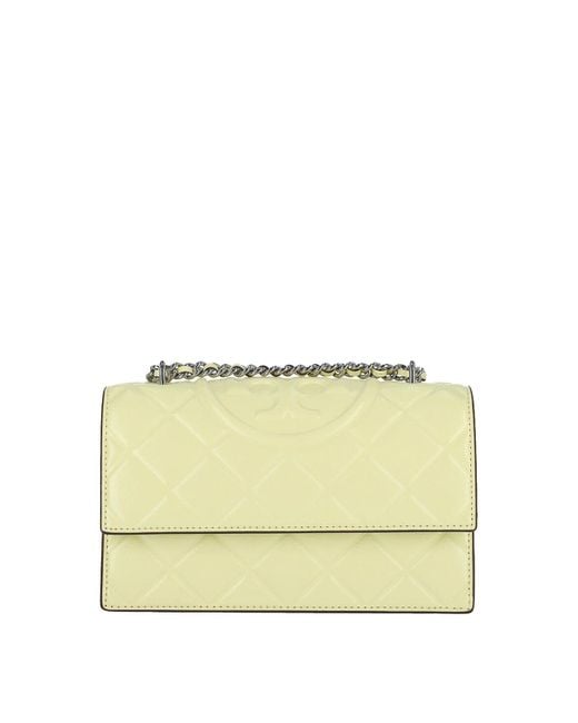 Small shoulder bag Fleming Tory Burch Yellow Reason imprinted with Diamond Sliding Ain Metal Sliding Metal and Convertible In Magnetic Patta Double Logo T A maxi flat pocket retro a flat flat pocket an internal zip pocket two separate internal compartments Colour: natural