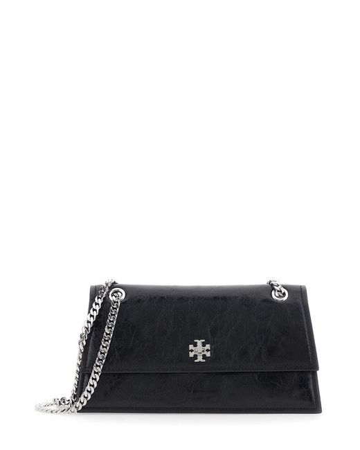 Women's Black 'Kira' Shoulder Bag With Chain Strap And Metallic Logo On The Front