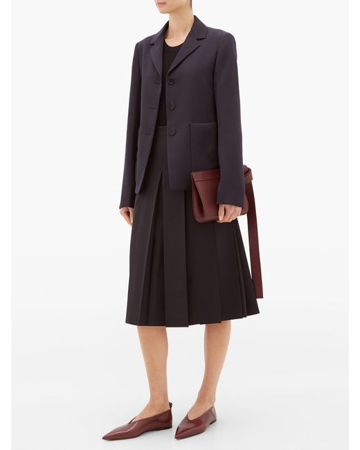 The modern silhouette defining this burgundy Tape XS clutch bag is the result of the combined expertise of founders Dimitrios Tsatsas and Esther Schulze-Tsatsas. It's crafted in Germany from grained leather with a knotted strap doubling as a handle and a spacious interior lined in ultra-soft navy leather. Carry it as the modern complement to an understated day-to-evening edit. Colour: multicolour