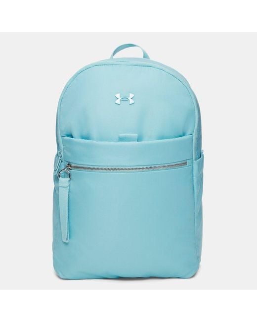 Water-resistant UA Storm technology keeps your essentials dry|Adjustable, ergonomically-shaped shoulder straps for added comfort|Soft-lined laptop compartment—holds up to 15" MacBook Pro® or similarly sized laptop|1 front valuables pockets with oversized zipper pull & 1 large front slip pocket|D-ring attachment point so you can clip anything with a carabiner on for easy transport|2 side water bottle pockets|Uses a fluorine-free water repellent treatment - Style #: 1384675|Elevated metal logo|Dimensions When Full: 11.8"W x 16.5"H x 6.3"L|Volume: 19.5 L|100% Polyester|Imported