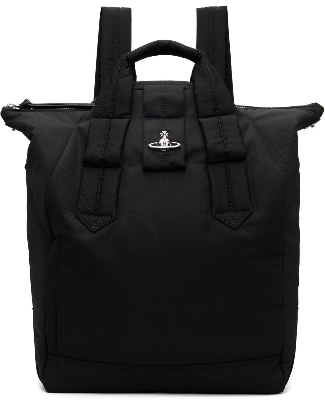 Technical twill backpack. · Carry handles at top · Adjustable shoulder straps · Loops with logo hardware at face · Zip pocket at face · Fold-down corners with press-stud fastening · Rubber bumper studs at base · Zip closure at main compartment · Zip pocket and laptop compartment at interior · Red satin lining · H15 x W13 x D5 Supplier color: Black Colour: black