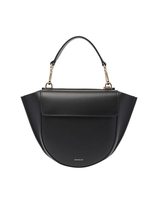 Wandler black hortensia mini hand bag, magnetic closure, inner open pocket, external zipped and magnetic closure pocket, removable handle, adaptable and removable strap, frontal mini logo Colour: black