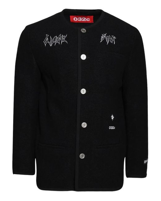 Men's Black Ghost Writer Button-Up Embroidered Jacket