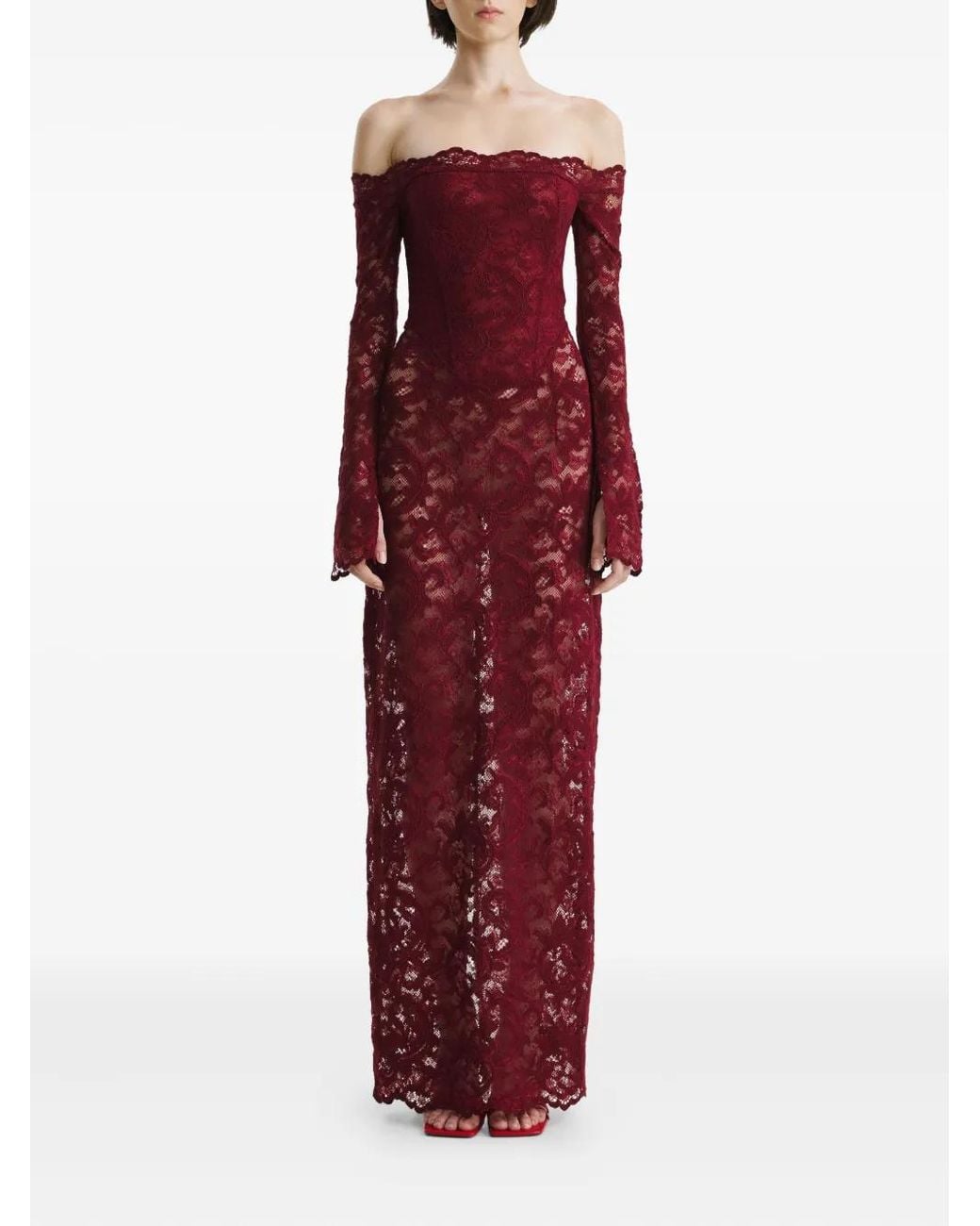 Women's Red Lace Off-Shoulder Maxi Dress