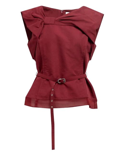 Women's Red Bow Belted Top