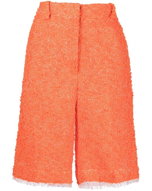 Women's Orange Knee-Length Tweed Shorts