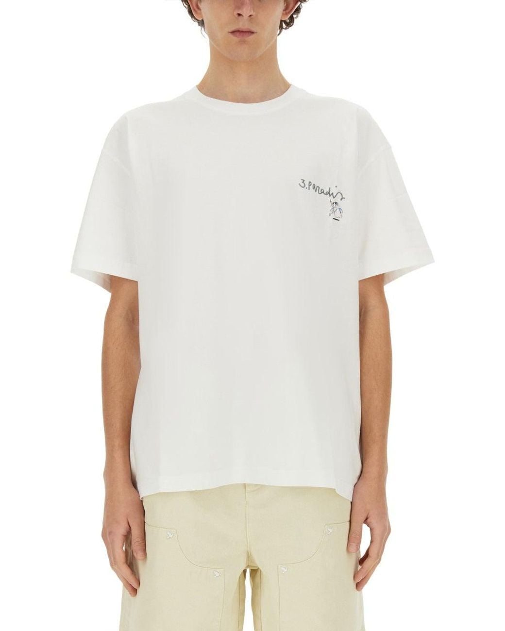 - 100% COTTON - MADE IN PortugalSpecificationValueBrand3.PARADISColorWHITEMaterial100% COTTON Made InPortugalGenderMenSeasonSS24CategoryT-SHIRTS