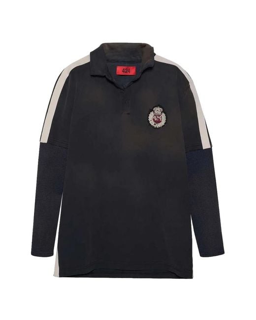 Black logo patch panelled design long sleeves point collar button fastening Size: M. Gender: Male. Material:Cotton. Colour: blue