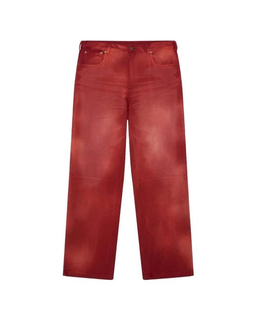 Red patchwork design back patch belt loops five pockets Size: XS. Gender: Male. Material:Cotton.