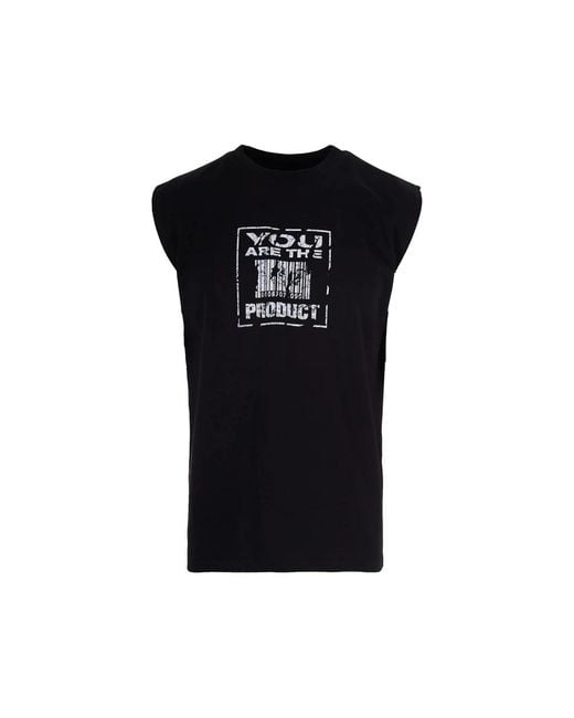 44 Label Group Text Print Sleeveless Round Neck Top — a cotton sleeveless top with a bold black text print, designed for easy layering and casual warm-weather wear. Key attributes: Black | White | Cotton | Round neck | Sleeveless | Black text print | Composition & care: Cotton Colour: black