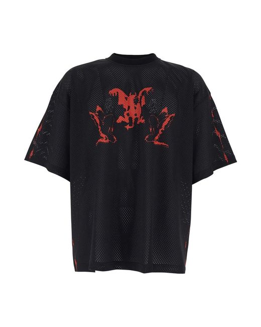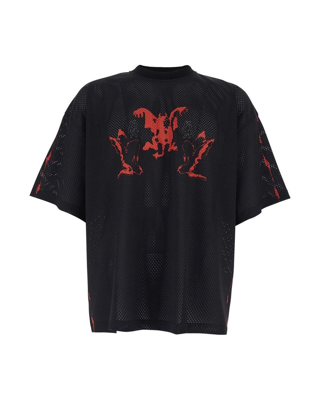 Men's Black Crew Neck T-Shirt With Perforated Design And All