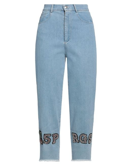 5 PROGRESS. denim, distressed, embroidered, beads, plain colour, light wash, high waisted, belt loops, tapered leg, regular fit, button fastenings, zip fastening, five pockets, tapered model. 98% Cotton, 2% Lycra®.