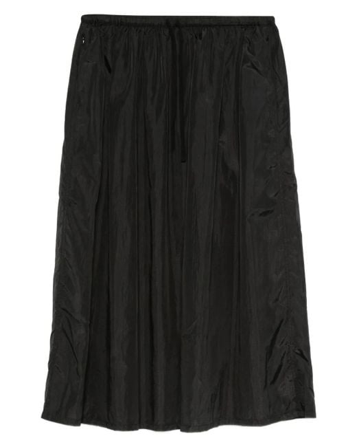 Pleated A-Line Midi Skirt - Black